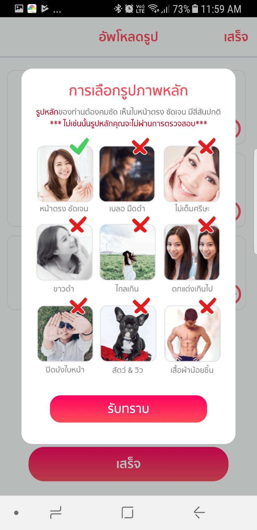 จะเห็นได้ว่าข้อกำหนดเรื่องรูปภาพที่อัพโหลดขึ้นไปของ Kooup นั้นค่อนช้างละเอียดมากทีเดียว โดยอนุญาตให้รูปแบบเดียวเท่านั้นที่สามารถใช้เป็นรูปหลักในโปรไฟล์ได้ นั่นก็คือรูปที่เห็นหน้าของผู้สมัครอย่างชัดเจน ไม่ถูกบดบัง หรือเบลอ ด้วยอะไรเป็นอันขาด และที่สำคัญต้องไม่ใช่รูปที่มีเสื้อผ้าน้อยชิ้นด้วย งานนี้เราลองมาทำการทดสอบกันหน่อยดีกว่าว่าหากเราเลือกรูปภาพที่ผิดกฎของ Kooup ขึ้นไปนั้น จะมีผู้ตรวจสอบดูแลอยู่เบื้องหลังจริงดังคำอ้างไหม เพราะแน่นอนว่าการใช้งานแอพพลิเคชั่นแบบนี้นั้น การเอาใจใส่ดูแลของเจ้าของแพลตฟอร์มถือเป็นสิ่งสำคัญในการสร้างมาตรฐานความปลอดภัยให้กับแอพพลิเคชั่นเป็นอย่างยิ่ง