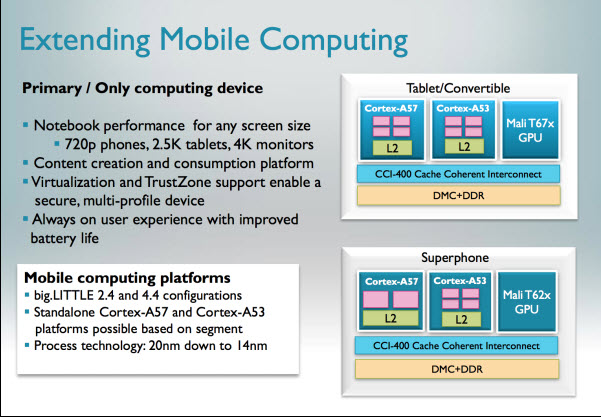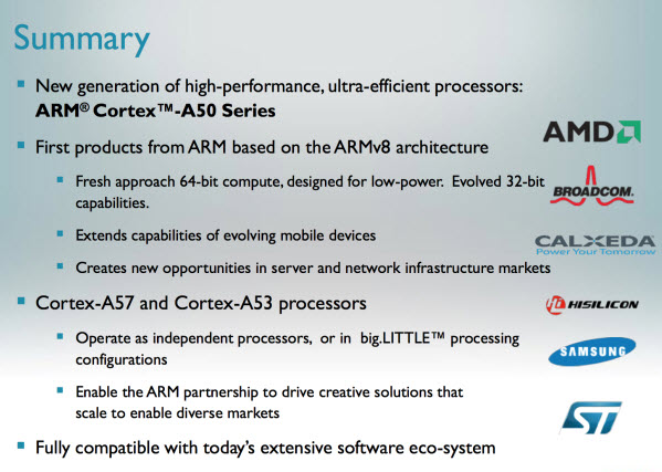 สืบเนื่องจากที่เราได้ยินข่าวมากมายเกี่ยวกับชิปเซ็ทจาก Samsung ตัวใหม่ที่จะมาพร้อมเทคโนโลยี 64 บิตแบบเดียวกับที่ Apple ใช้ จากหลายๆแหล่ง วันนี้ทางเว็บไซต์ PhoneArena ได้รายงานว่า สำนักข่าวในเกาหลีได้รายงานว่า ชิปเซ็ท Exynos ที่สร้างบนสถาปัตยกรรมแบบ 64 บิตของ Samsung ได้เข้าสู่ขั้นตอนสุดท้ายของการทดสอบแล้ว ซึ่งชิปเซ็ทตัวใหม่นี้จะใช้พื้นฐานมาจากสถาปัตยกรรม ARM Cortex-50 ซึ่งมีจุดเด่นในแง่ของสถาปัตยกรรมแบบ 64 บิตที่ทาง ARM เคยอธิบายเอาไว้ตามนี้ครับ