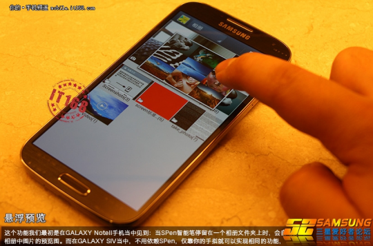 แต่มีหนึ่งภาพที่แสดงถึงฟังชั่นที่คล้าย Airview ของ Galaxy Note2 แต่ไม่ต้องใช้งานผ่านปากกา S-pen เป็นฟังชั่น floating touch ที่เราเคยพูดไปก่อนหน้านี้ และมีภาพที่แสดงถึงไอคอนลูกตา ซึ่งน่าจะเกี่ยวกับการทำงานแบบตรวจจับการมอง แต่ยังไม่แน่ใจว่าจะหมายถึง Smart Scroll และ Smart pause ที่เคยรายงานไปหรือไม่ครับ