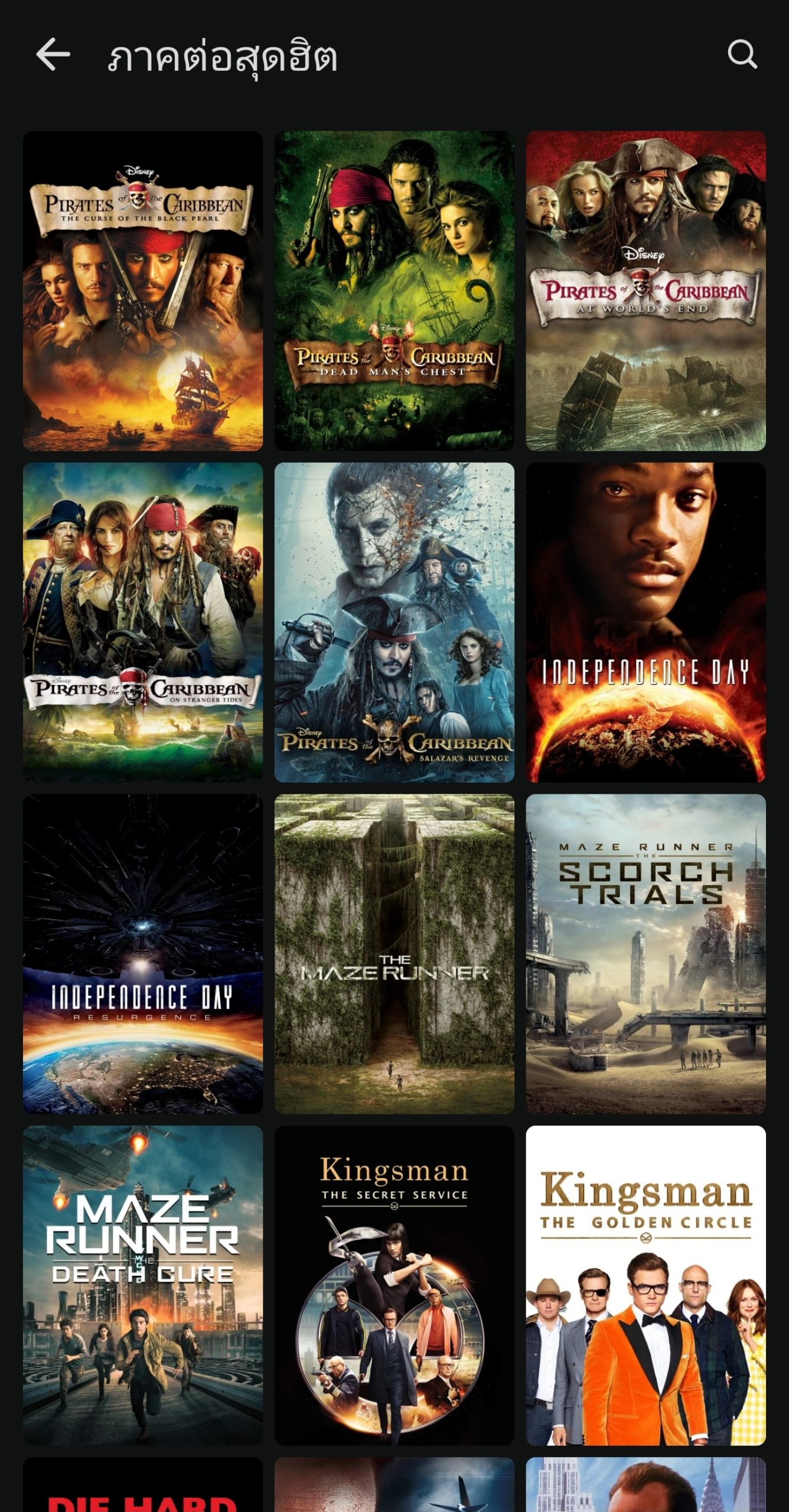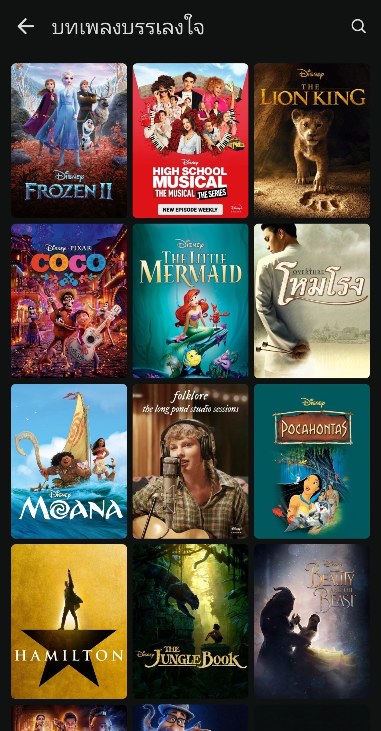หมวดหมู่ต่างๆ ใน Disney+Hotstar