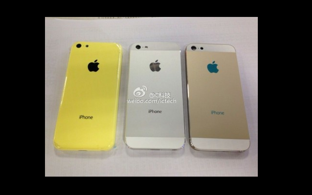 ภาพจากเว็บไซด์ Weibo เผยตัวเครื่องคล้าย iPhone 5S สีทาง ประกบคู่กับเครื่องสีเงินและ iPhone Lite