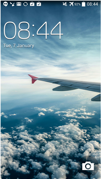 ต่อมาเป็นส่วนของ Lock screen ที่มีสัญลักษณ์กล้อง (Camera) อยู่ตรงมุมวาล่างที่ช่วยให้เ้ข้าโหมดกล้องได้ว่องไวขึ้น