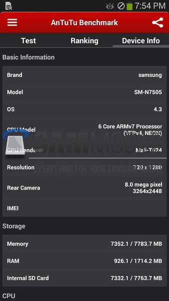 ตอนนี้ Samsung Galaxy Note 3 Neo เป็นหนึ่งในสินค้าที่เก็บความลับไม่อยู่มากที่สุดเลยก็ว่าได้ เพราะรุ่นใหม่ๆที่จงใจวางมันให้เป็นรุ่นระดับท็อปจาก Samsung ไม่ค่อยจะมีอะไรเล็ดลอดออกมาให้รู้เยอะขนาดนี้ นี่มีหลุดออกมาทั้งรูปตัวเครื่องหลายมุม แล้ววันนี้ยังมีหลุดค่า Benchmark ออกมาอีก คงเหลือแค่หลุดแบบเป็นคลิป Hands on ก็คงครบแล้ว แต่ผมว่าการหลุดคะแนน Benchmark ก็ดีเหมือนกันนะ เพราะจากข่าวเก่าว่ากันว่า Note 3 Neo จะมาพร้อมกับ CPU แบบ Hexa-Core (6แกน) จะได้รู้กันว่ามันแรงจริงหรือมีดีแค่กินแบตเพิ่มขึ้น