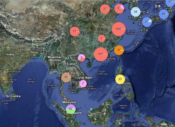 แผนที่นี้ใส่ข้อมูลเอาไว้จากภายในประเทศจีน แสดงสถานที่ตั้งของบรรดา Apple Suppliers ที่มีอยู่ทั่วโลก ในขณะที่เราจะเห็นได้ว่า ส่วนใหญ่จะมีที่ตั้งอยู่ที่ทวีปเอซีย และสหรัฐอเมริกา ที่ต้องบอกว่าเป็นแหล่งตลาดใหญ่ที่มีผู้ใช้อุปกรณ์จาก Apple อยู่มากเป็นอันดับต้นๆอีกด้วย และแน่นอน นั้นรวมถึงประเทศไทย ที่มีผู้ใช้อุปกรณ์ Apple ไม่น้อยหน้าชาติใดในโลก ตามไฟล์นี้แสดงให้เห็นความสำคัญของประเทศไทยที่นับเป็นประเทศ 1 ใน 9 พืนที่หลักอีกด้วยครับ