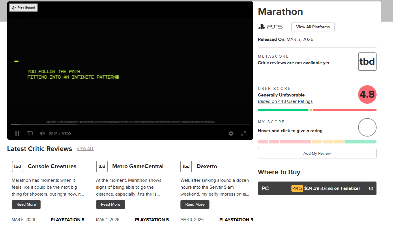 Marathon เกมยิงแนว Extraction Shooter จาก Bungie กำลังเผชิญกระแสรีวิวบอมบ์บนเว็บไซต์ Metacritic หลังผู้เล่นจำนวนมากให้คะแนนต่ำผิดปกติ แม้เกมจะได้รับความสนใจจากแฟนบางส่วนที่ชื่นชอบความท้าทาย สไตล์ภาพ และเนื้อเรื่องที่ลึกของจักรวาลเกม