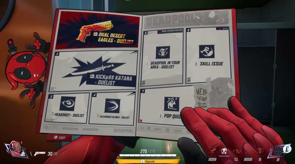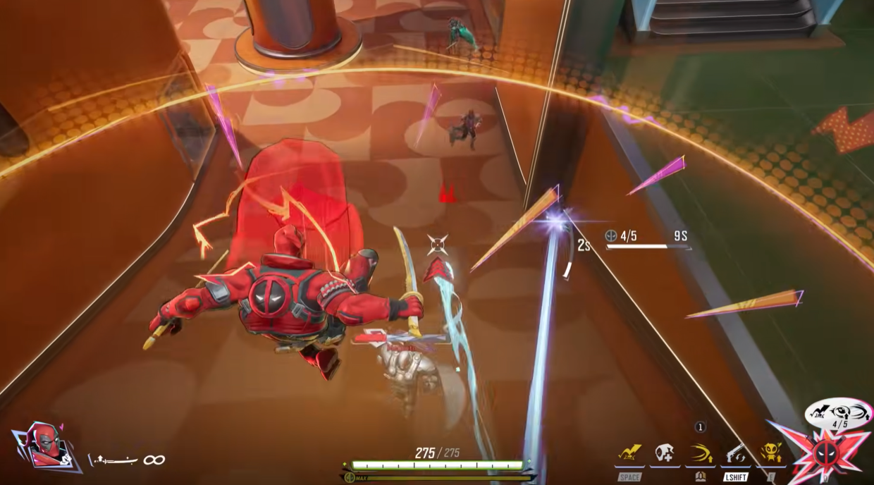 Deadpool ยังมาพร้อมระบบอัลติเมตและสกิลที่เปลี่ยนไปตามบทบาท โดยเกจอัลติเมตจะชาร์จจากสไตล์การต่อสู้ที่ฉูดฉาดตามคาแรกเตอร์ นอกจากนี้เขายังสามารถเพิ่มความสามารถผ่านระบบ “เลเวลอัป” แบบ RPG