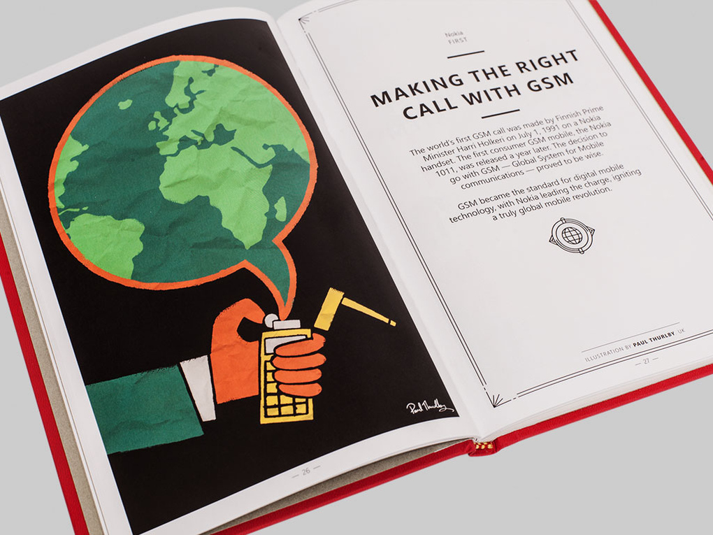 หนังสือที่ชื่อว่า One นี้เป็นหนังสือความยาว 128 หน้าที่ประกอบไปด้วยรูปภาพหรือ Infographic ที่สวยงามและบอกเล่าเรื่องราวประวัติศาสตร์ของทั้ง 2 บริษัทก่อนที่ประวัติศาสตร์ทั้ง 2 จะเดินทางมาบรรจบกัน โดยเริ่มตั้งแต่ประวัติศาสตร์ตอนที่ Nokia ยังเป็นบริษัททำกระดาษและ Microsoft เพิ่งเริ่มก่อตั้งที่ New Mexico เรื่อยมาจนถึงตอนที่ Nokia สร้างมือถือเครื่องแรกอย่าง Mobira Cityman และต่อมาที่ประวัติศาสตร์การโทรศัพท์ผ่านเครือข่าย GSM เป็นครั้งแรก ส่วนฝั่งของ Microsoft ก็เริ่มตั้งแต่การก่อตั้งบริษัทในช่วงแรก