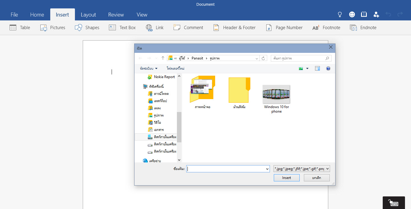 ตัวอย่างหน้าจอ Word Preview สำหรับ Windows 10