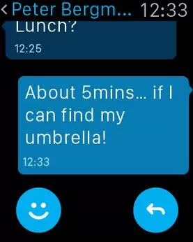 ในการใช้งาน Skype ผ่าน Apple Watch นั้นเราจะสามารถเริ่มแชทกับเพื่อนที่เราตั้งค่าให้เป็น Favorite ได้เท่านั้นนะครับ แต่ถ้าเพื่อนที่ไม่ได้เป็น Favorite เราจำเป็นต้องรอให้เค้าเหล่านั้นเป็นคนเริ่มบทสนทนามาหาเราแทน นอกจากนี้ฟีเจอร์การใช้งานอย่าง Force Touch ของ Apple Watch นั้นยังสามารถใช้ในการทำเครื่องหมายว่าอ่านแล้วทุกๆบทสนทนาได้อีกด้วย เรียกได้ว่าเวอร์ชั่นนี้จะเน้นไปในส่วนการใช้งานร่วมกับ Apple Watch ซะเป็นส่วนใหญ่ครับ