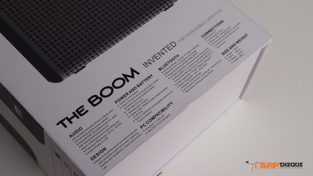 วัสดุ Anodized Aluminum แข็ง และไม่เป็นสนิม สีไม่ลอก ผิมสัมผัสลื่นมืนแบบเย็นๆอย่างที่เราพอเดาได้จากการที่ The Boom ทำจากโลหะทั้งตัวครับ ขนาดเครื่องเล็ก น้ำหนักจึงอยู่ในเกณฑ์พกพาได้แบบสบายๆ