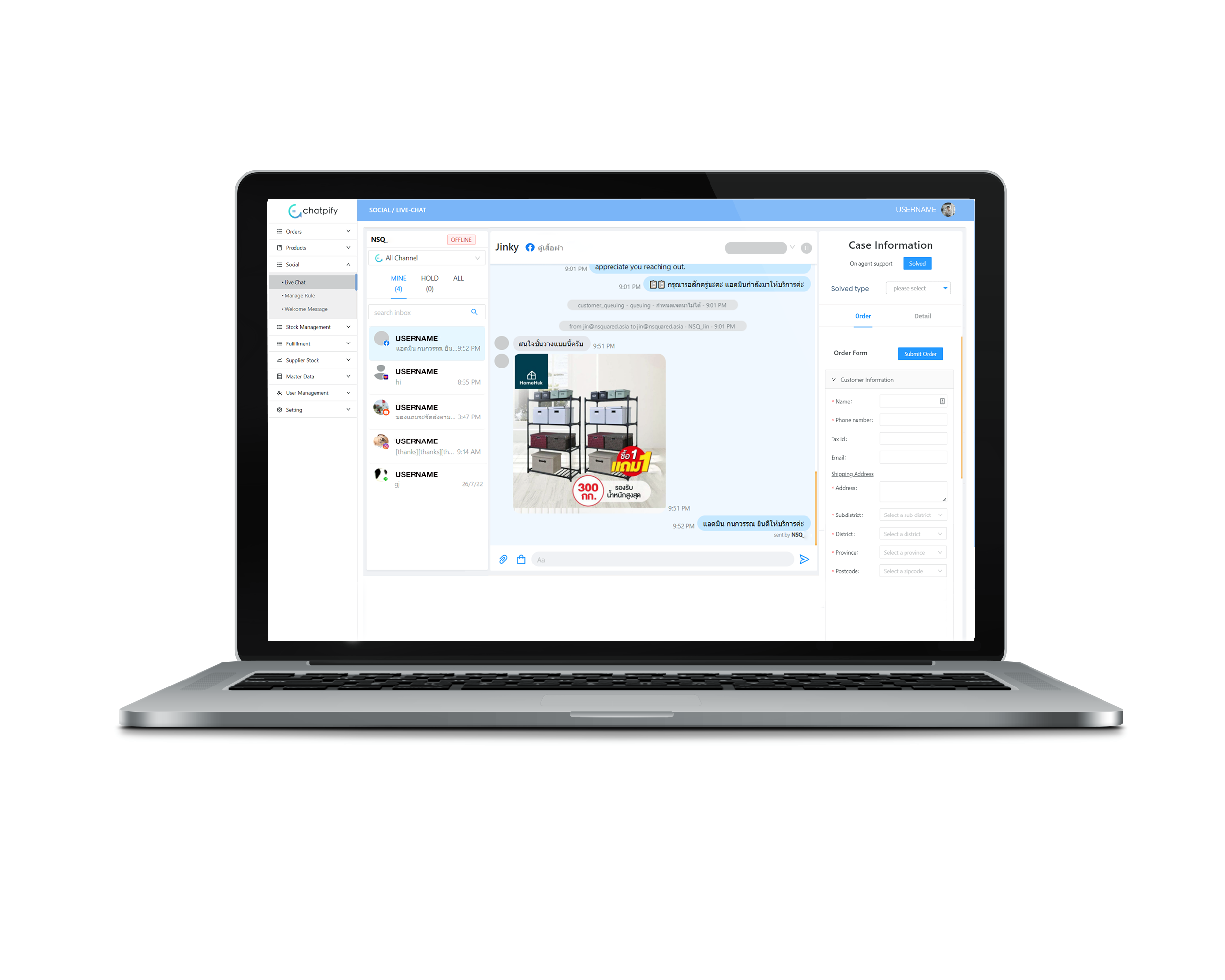 แบรนด์สามารถบริหารจัดการยอดสั่งซื้อจากแพลตฟอร์มอีคอมเมิร์ซและโซเชียลมีเดียมากกว่า 10 ช่องทาง อาทิ Shopee, Lazada, Facebook, LINE และ TikTok ที่มียอดสั่งซื้อเป็นจำนวนมาก โดย Omniplus จะรวบรวมยอดสั่งซื้อและสต๊อกจากแพลตฟอร์มอีคอมเมิร์ซต่างๆ ให้อยู่ในฐานข้อมูลกลางที่เดียว เพื่อให้แบรนด์พร้อมบริหารจัดการยอดสั่งซื้อ จัดการ สต๊อก และช่วยจัดการข้อมูลสินค้า เพื่อป้องกันความผิดพลาด ไปจนถึงเตรียมจัดส่ง