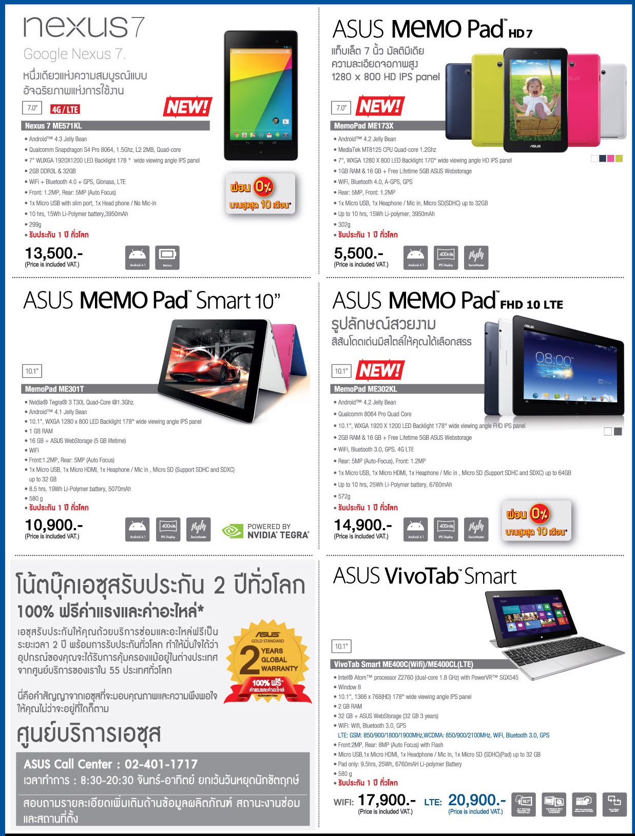 Asus New Nexus 7 (LTE 4G) ประกาศราคาไทยแล้ว 13,500 บาท และพร้อมจำหน่ายงาน คอมเทค ไทยแลนด์ 2013” อัดโปรโมชั่นสุดแรง!!! รับลมหนาว