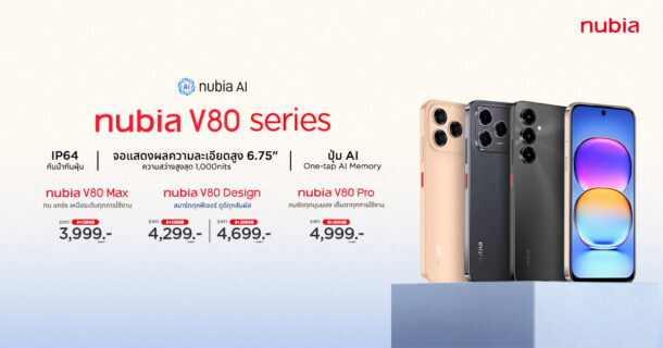 nubia แบรนด์สมาร์ตโฟนระดับโลก ประกาศเปิดตัวสมาร์ตโฟน nubia V80 Series อย่างเป็นทางการในประเทศไทย เผยโฉมกลุ่มผลิตภัณฑ์นวัตกรรมล่าสุด นำโดย V80 Pro, V80 Design และ V80 Max ที่ถูกรังสรรค์ขึ้นเพื่อตอบโจทย์ไลฟ์สไตล์ยุคใหม่ที่หลากหลาย ผสานดีไซน์ระดับพรีเมียมเข้ากับเทคโนโลยีที่ตอบโจทย์การใช้งานจริง และความทนทานมาตรฐานสากล ตอกย้ำนิยามของสมาร์ตโฟนที่เป็นมากกว่าเครื่องมือสื่อสาร แต่เป็นส่วนหนึ่งของชีวิตที่สมบูรณ์แบบในทุกมิติ
