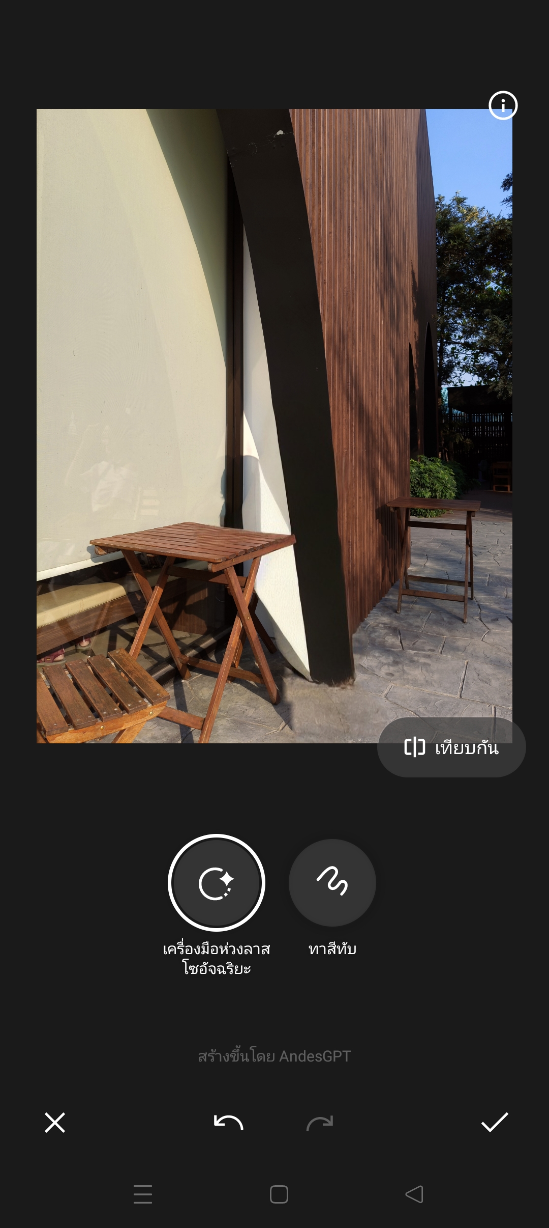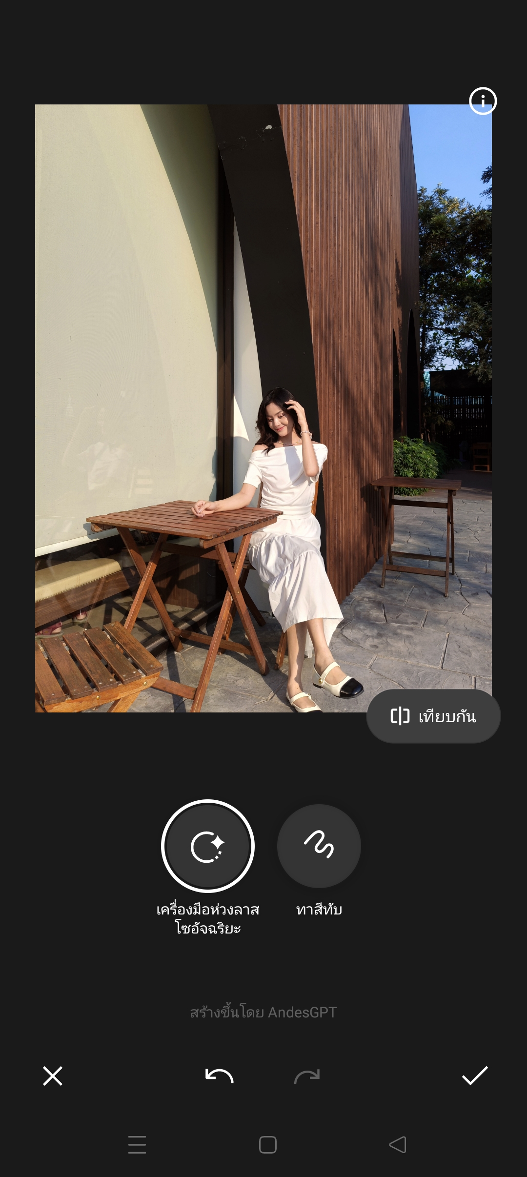 การลบภาพของ OPPO AI Eraser ใช้ระบบของ AndesGPT ซึ่งมีความฉลาดและแม่นยำในการแยกวัตถุ และสามารถหาสิ่งแทนที่พื้นหลังได้เก่งครับ จากที่ทดสอบกับฉากภาพที่มีพื้นหลังหลายเฉดสี ก็สามารถลบวัตถุออกไปเนียนตั้งแต่ในการสั่งลบครั้งแรก เราสามารถทำซ้ำได้จนกว่าจะพอใจนะครับ