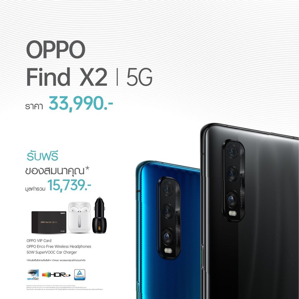 OPPO เปิดตัวสมาร์ทโฟนระดับแฟล็กชิพ OPPO Find X2 Series 5G OPPO Find X2 5G เปิดตัวในราคา 33,990 บาทและ OPPO Find X2 Pro 5G ในราคา 40,990 บาท สมาร์ทโฟนที่รวมสุดยอดนวัตกรรมไว้ในเครื่องเดียว โดยได้ทำการเปิดตัวไปเมื่อวันที่ 6 มีนาคม 2563 แบบออนไลน์ครั้งแรกในประเทศไทย ซึ่งในซีรีส์นี้มีสองรุ่นด้วยกัน ได้แก่ OPPO Find X2 5G โดยมีราคาเปิดตัวที่ 33,990 บาท และ OPPO Find X2 Pro 5G มีราคาเปิดตัวที่ 40,990 บาท พร้อมวางจำหน่ายอย่างเป็นทางการวันที่ 20 มีนาคมนี้ ณ OPPO Brand Shop ทุกสาขา และตัวแทนจำหน่ายทั่วประเทศ