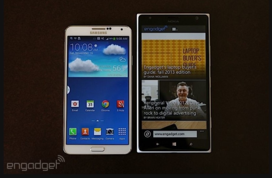 เปรียบเทียบตัวเครื่องกับ Nokia Lumia 1020, iPhone 5 และ Samsung Galaxy Note 3