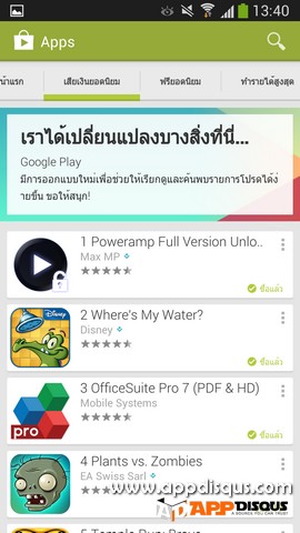 ไม่อัพให้สักที ก็ติดตั้งเองเลยละกัน – – รอนานละ ทั้งๆที่ ทำใจเย็นจะรอ Google อัพเดทให้ ผ่านมาหลายเพลา ว่าแล้วก็อย่ารอเลย เราเอาไฟล์ติดตั้งมาให้เพื่อนๆ ดาวน์โหลดติดตั้งกันเองเลยดีกว่าครับ สำหรับใครยังไม่ได้ลองใช้ Playstore เวอร์ชั่น 4 ก็จะได้ลองกันสักทีวันนี้ เปลี่ยนแปลงเยอะอยู่ ดูแล้วแปลกตาดีเหมือนกันครับ ^^