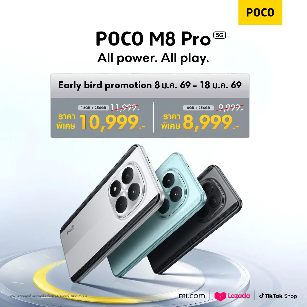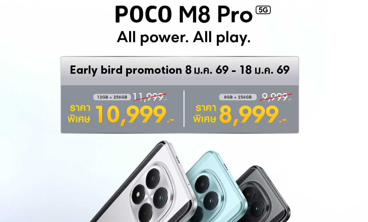 POCO เปิดตัวสมาร์ทโฟน POCO M8 Series อย่างเป็นทางการ พร้อมกับการอัปเกรดรอบด้านที่จะยกระดับพลังความบันเทิงขึ้นไปอีกขั้น ในราคาเริ่มต้นเพียง 7,999 บาท