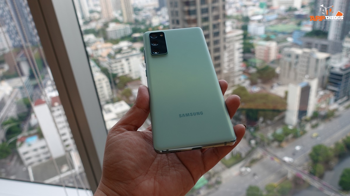 แรกสัมผัสตัวเครื่อง Galaxy S20 FE ตัวเครื่องน้ำหนักเบา ฝาหลังที่ใช้วัสดุ Reinforced Polycarbonate พร้อมพื้นผิวสัมผัสที่ช่วยลดรอยเปื้อนและรอยนิ้วมือ สีสันใหม่ มีทั้งหมด 6 สี แต่ที่ได้จับมี 4 สีค่ะ สีน้ำเงิน Cloud Navy, สีแดงCloud Red ,สีลาเวนเดอร์Cloud Lavender และสีมินท์Cloud Mint เรียกว่าสวยทุกสีเลยค่ะ