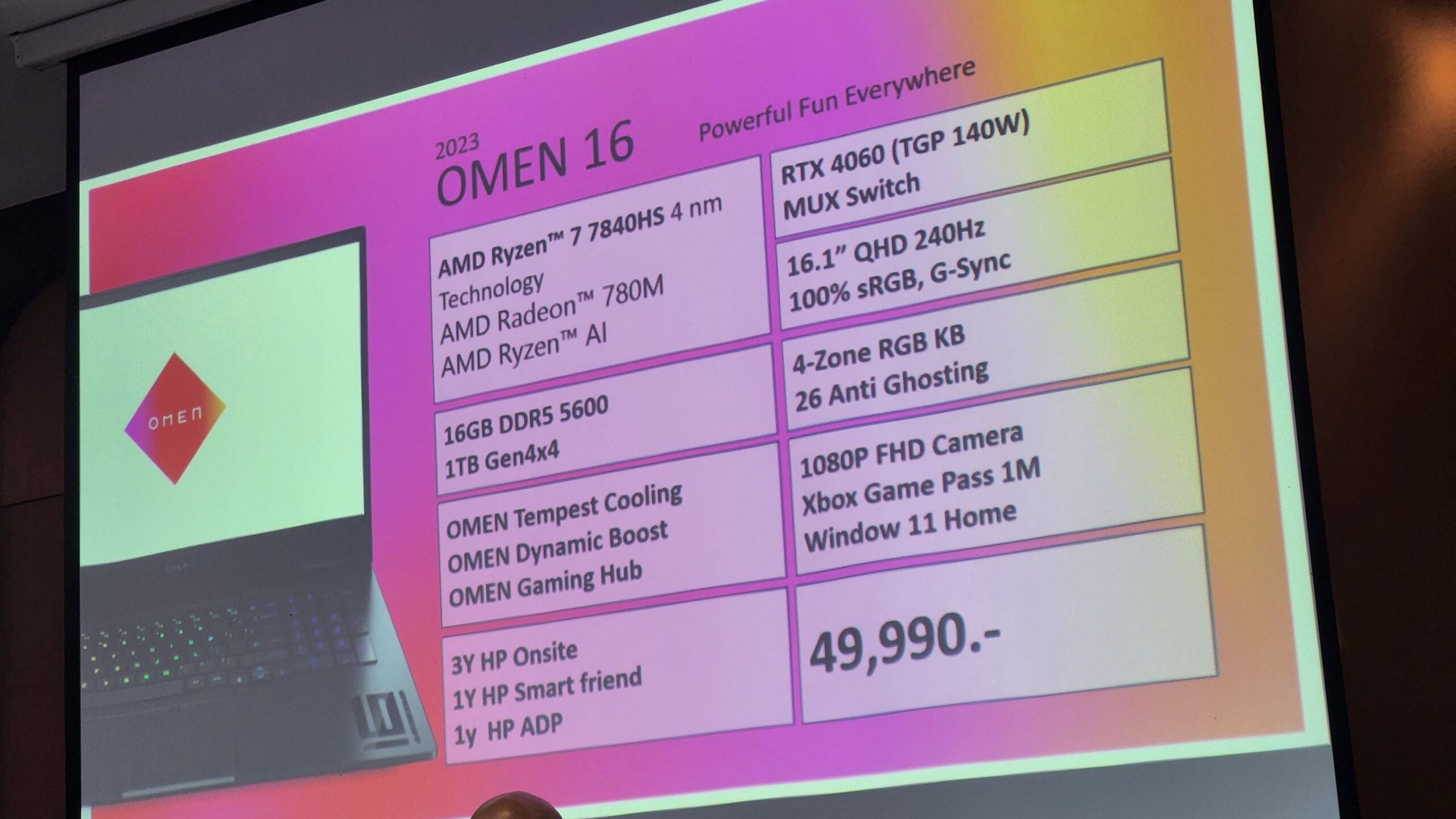 โดยภายในงานเปิดตัว ก็มีการประกาศราคาจำหน่ายออกมาเรียบร้อยครับ 49,990 บาท สำหรับ OMEN 16 และ 38,990 บาทสำหรับ VICTUS 16 ที่เปิดตัวออกมาคู่กัน