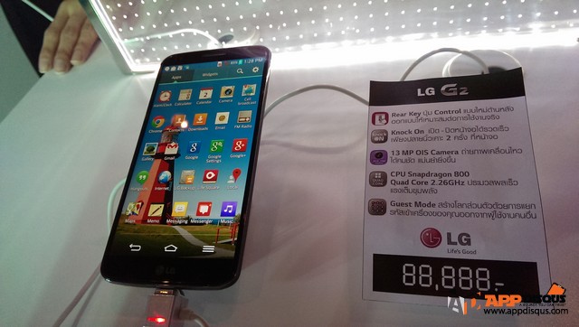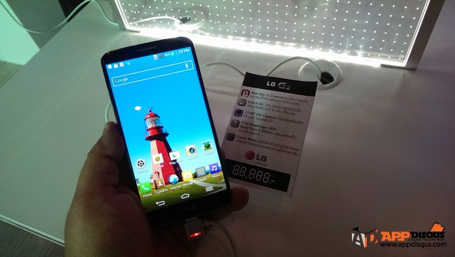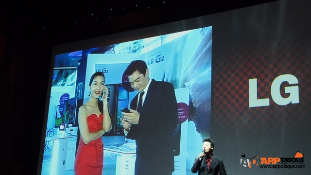 งานนี้่ VJ วุ้นเส้นและสามีหนุ่มหล่อ ชาคริต แย้มนาม มาเป็นพรีเซ็นเตอร์ให้กับทาง LG Mobile ขึ้นเวทีพร้อมผู้บริหาร เปิดตัวผลิตภัณฑ์และเล่าความรู้สึกในการทดสอบใช้งาน LG G2 มาก่อนใครในช่วงระยะเวลาหนึ่งครับ ส่วนภายนอกห้องแถลงข่าว LG ก็ได้มีการจัดโชว์ตัวเครื่อง LG G2 ให้กับบรรดาสื่อได้ทดลองเล่นทดลองใช้ แอปดิสคัสก็ไม่พลาดสิครับ จับทดสอบลองใช้งานดู บอกได้เลยวาแรกสัมผัสเบาเกินกว่าที่คิดไว้และเล็กกว่าที่คาดไว้ แม้จะมีหน้าจอขนาดใหญ่ 5.2 นิ้ว แต่เนื่องจากขอบเครื่องบางเฉียบ ตัวมิติเครื่องโดยรวมจึงเหลือเพีบงเท่านี้เองครับ น่าใช้น่าพกมากครับ