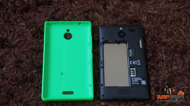 การออกแบบฝาหลังได้รับการปรับปรุงจากพลาสติกด้านๆ ที่เป็น Polycarbonate ทั้งชิ้น เปลี่ยนมาใช้วัสดุที่เรียกว่า Translucent Outer Layer หรือฝาหลังที่เคลือบพื้นผิวแบบใสไว้ด้านนอกอีกชั้นหนึ่ง (เหมือนกับใน Nokia Asha และ Nokia Lumia 620)