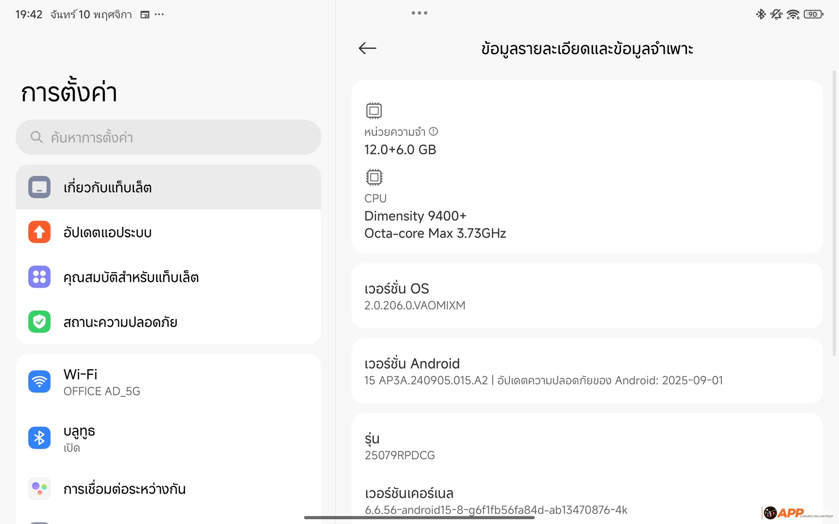 Xiaomi Pad Mini เปิดตัวพร้อมชิปประมวลผล MediaTek Dimensity 9400+ ที่ผลิตบนสถาปัตยกรรม 3nm รุ่นใหม่ ทำงานร่วมกับ GPU Immortalis-G925 MC12 และหน่วยประมวลผล AI NPU 890 ให้พลังประสิทธิภาพเหนือแท็บเล็ตขนาดเล็กทั่วไปอย่างชัดเจน