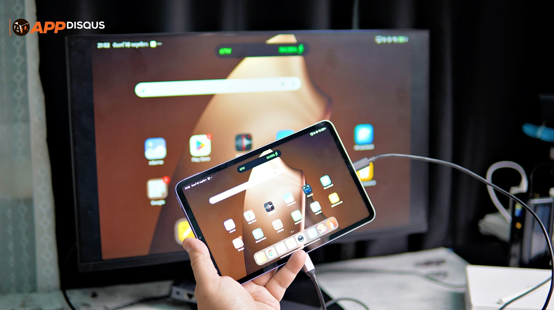 พอร์ตด้านล่างสามารถเชื่อมต่อจอภาพนอกได้ พร้อมใช้พอร์ตส่วนท้ายชาร์จไฟไปได้ด้วยพร้อมกัน ทำให้สามารถใช้งานในรูปแบบของ PC ได้เลยครับ หรือต่อออกดูหนัง เล่นเกม กับจอขนาดใหญ่ภายนอกได้เลย