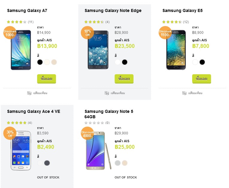 รุ่นอื่นๆ เพิ่มเติม http://store.ais.co.th/th/mobile-phone/samsung.html?limit=24
