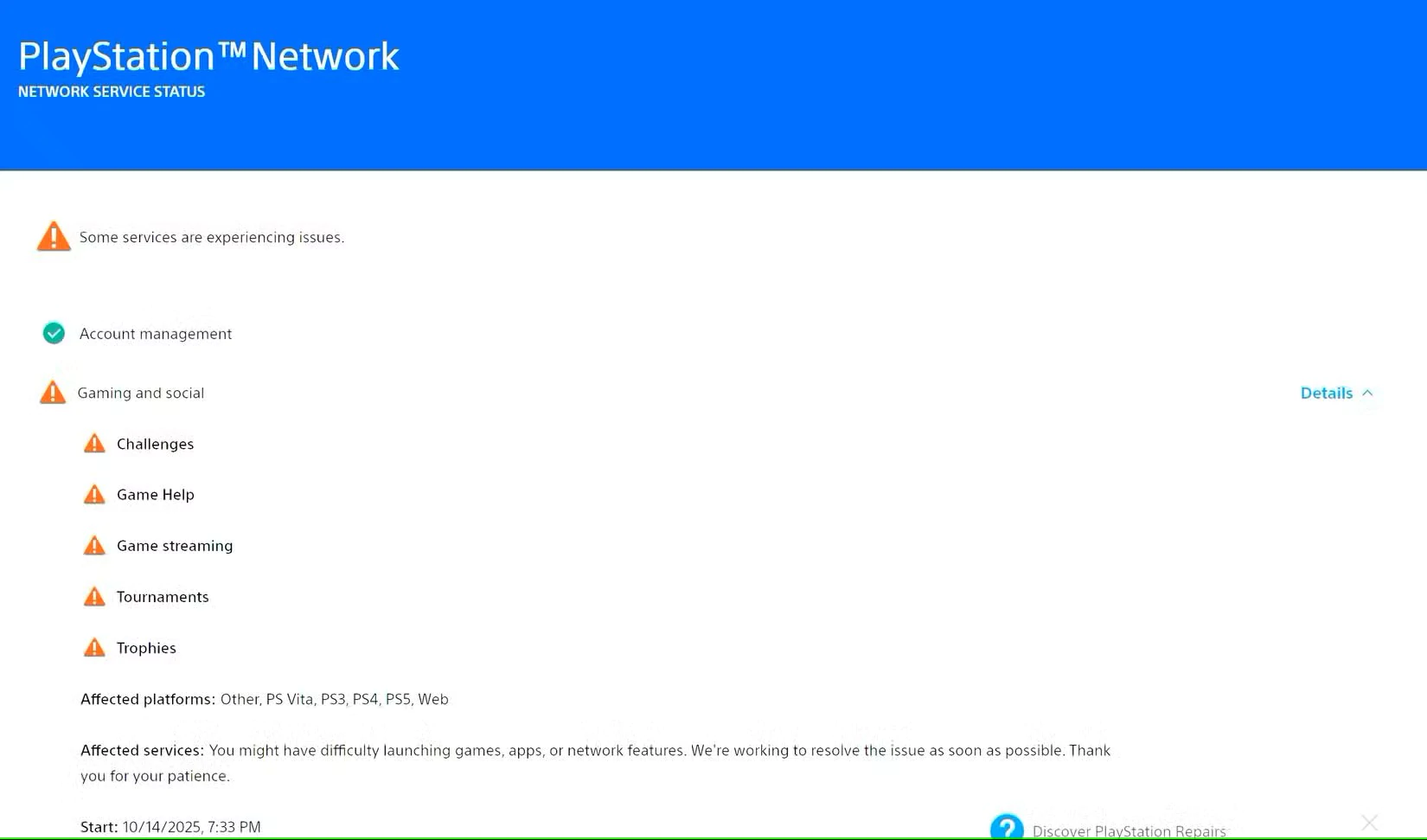 ในช่วงเย็นของวันที่ 14 ตุลาคม 2025 มีรายงานจำนวนมากจากผู้เล่น PlayStation ว่า PSN (PlayStation Network) ประสบปัญหาใช้งานไม่ได้ โดยหลายคนได้รับข้อความ “service busy” เมื่อพยายามเชื่อมต่อระบบ หรือเข้าถึงฟีเจอร์ออนไลน์ เช่น การล็อกอินและดูรายชื่อเพื่อนออนไลน์