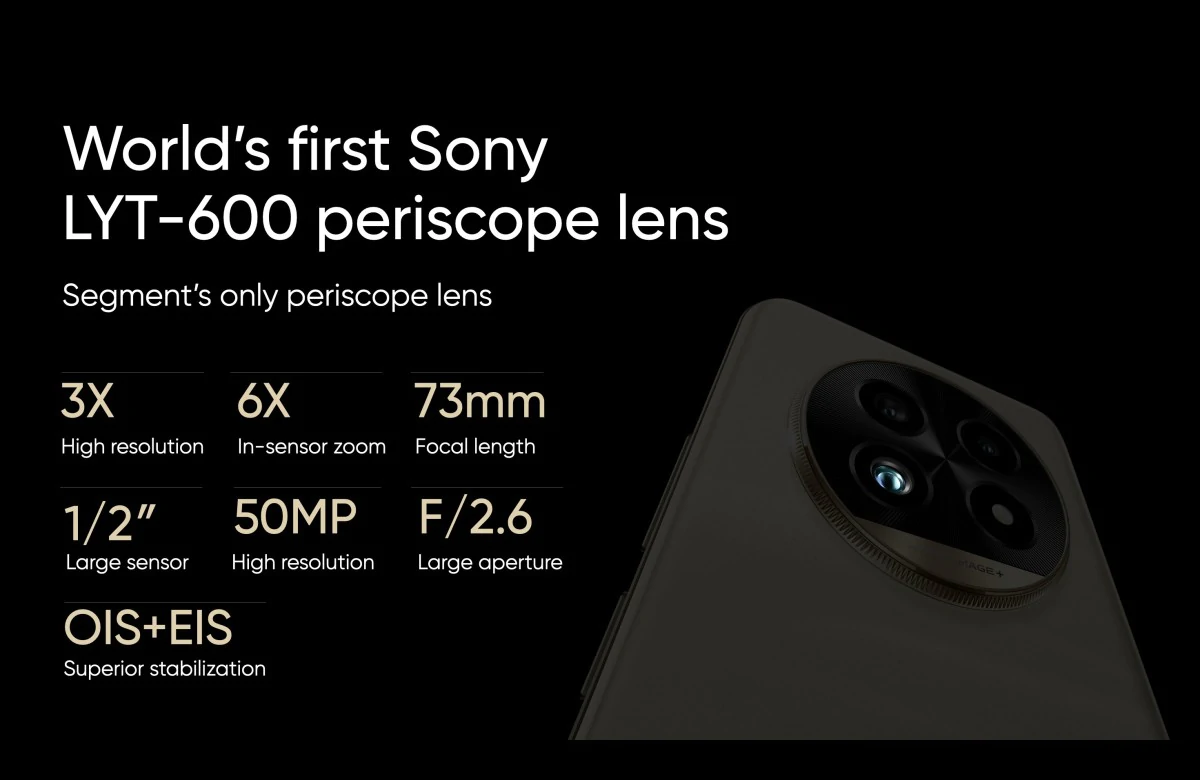 realme 13 Pro+ เป็นสมาร์ตโฟนรุ่นแรก Sony LYT-701 ความละเอียด 50 ล้านพิกเซล, กล้องซูม Telephoto 3x เซนเซอร์ Sony LYT-600 ความละเอียด 50 ล้านพิกเซล และตัวสุดท้ายเป็นกล้อง Ultrawide ความละเอียด 8 ล้านพิกเซล ส่วน realme 13 Pro ใช้เซนเซอร์ Sony LYT-600 ความละเอียด 50 ล้านพิกเซล และกล้องความละเอียด 8 ล้านพิกเซลแบบเดียวกันกับ Pro+
