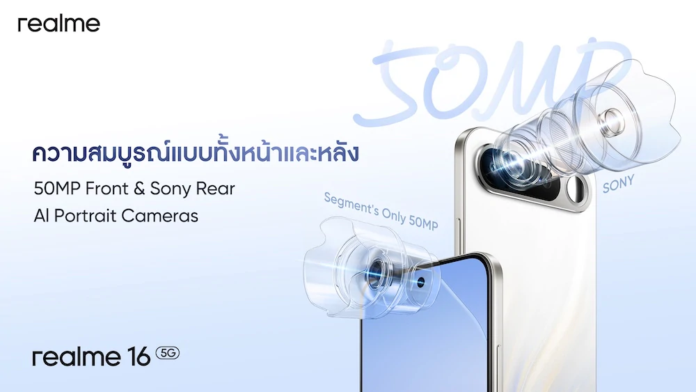 - realme 16 5G ความจุ 8/256GB ราคาเริ่มต้น 6,999 บาท