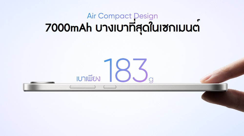 มอบความโดดเด่นที่แตกต่างด้วยการออกแบบ Air Design ทำให้ตัวเครื่องบางเพียง 8.1 มม. น้ำหนักเบา 183 กรัม พร้อมดีไซน์ฝาหลังแบบ Aurora Wings ที่เล่นแสง-เปลี่ยนสีไปตามมุ มมอง สร้างเอฟเฟกต์ราวกับแสงเหนือที่ พลิ้วไหว ดึงดูดทุกคู่สายตา ด้านหน้าใช้จอแสดงผลขนาด 6.57 นิ้ว ขอบล่างบางเฉียบเพียง 2.23 มม. ให้ประสบการณ์ด้านภาพที่ สวยงามเต็มตา พร้อมสัมผัสการจับถืออย่ างสบายมือในทุกวัน