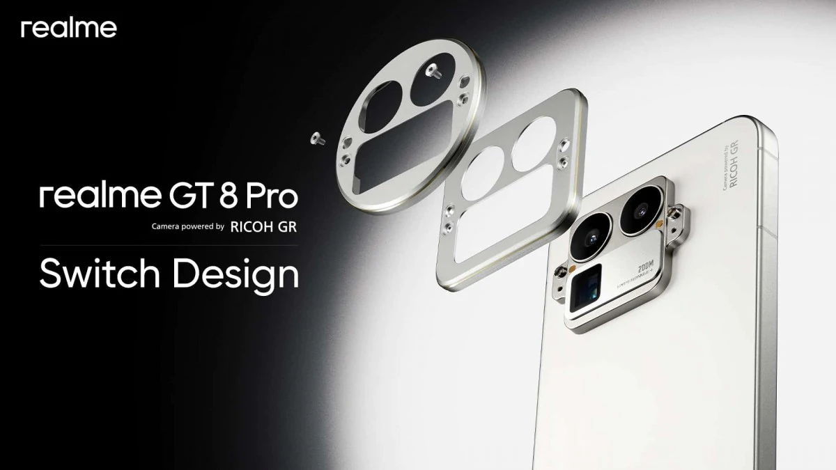 หลังจากเปิดตัวในประเทศจีนเมื่อเดือนที่ผ่านมา realme ได้เผยรายละเอียดเพิ่มเติมเกี่ยวกับดีไซน์ของ GT 8 Pro ก่อนเปิดตัวในตลาดโลก โดยจุดเด่นอยู่ที่โมดูลกล้องแบบ “Switchable Camera Bump” ซึ่งสามารถถอดเปลี่ยนเลนส์ครอบได้ด้วยสกรู 2 ตัว ทำให้ผู้ใช้สามารถปรับแต่งรูปลักษณ์ได้หลากหลาย ทั้งทรงกลม ทรงเหลี่ยม หรือสไตล์หุ่นยนต์ โดยมีให้เลือกหลายสีและวัสดุ