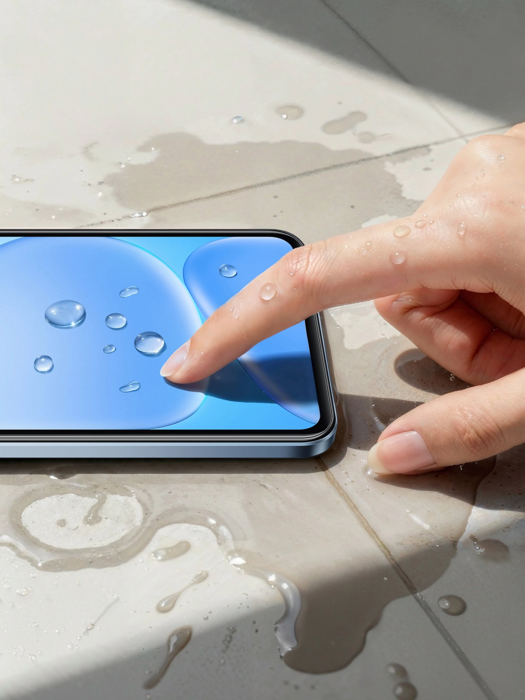 บแรงกระแทกหลายจุด เพื่อลดความเสียหายจากการตกหล่น รองรับมาตรฐาน IP54 ป้องกันฝุ่นและละอองน้ำ พร้อมฟีเจอร์ Wet Hand Touch ใช้งานได้แม้มือเปียก