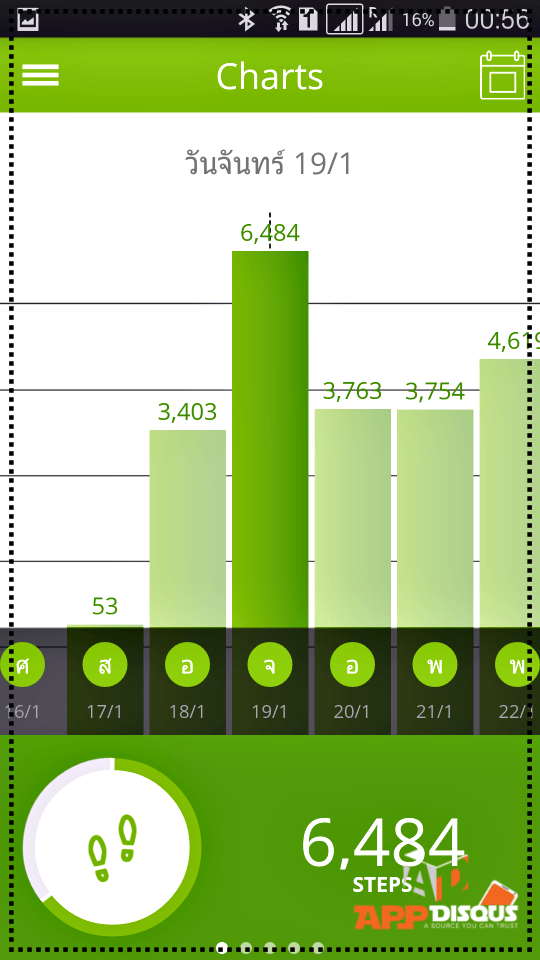 ภายในตัวแอพพลิเคชั่นบนอุปกรณ์สมาร์ทโฟน ก็จะสามารถดูรายละเอียดกิจกรรมการเคลื่อนไหวของเราได้ทั้งหมด ทั้งแบบรายวันและแบบย้อนหลัง