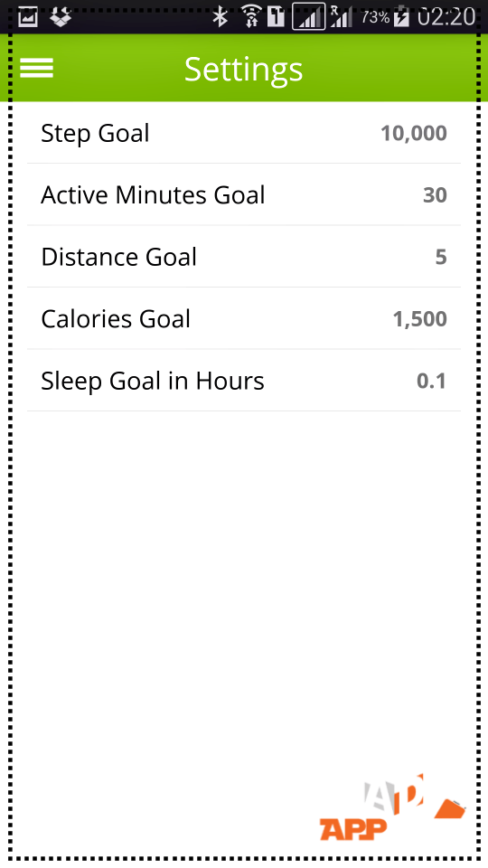กำหนดเป้าหมายที่เราต้องการในการออกกำลังกายหรือจำนวนการเคลื่อนไหวของเราได้ และใส่ข้อมูลส่วนบุคคลของเราให้หน้าตั้งค่าผู้ใช้เพื่อให้แอพพลิเคชั่นคำนวนปริมาณการเผาผลาญได้อย่างแม่นยำ