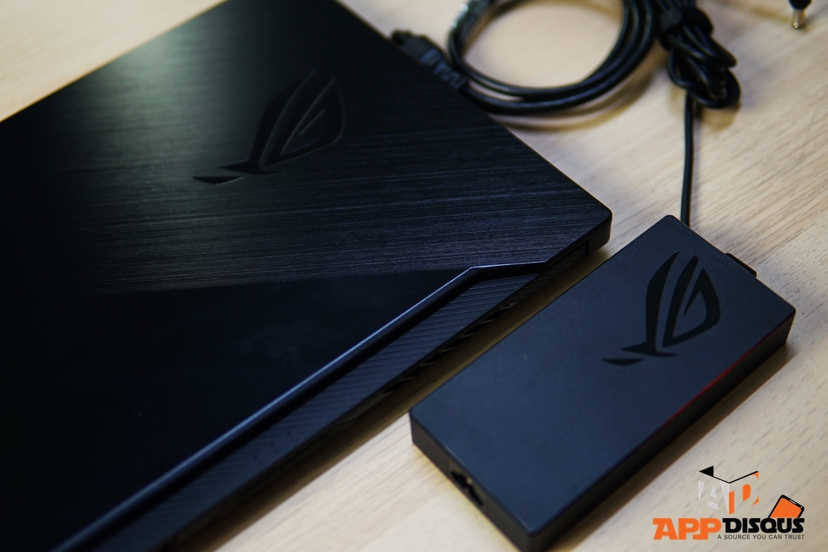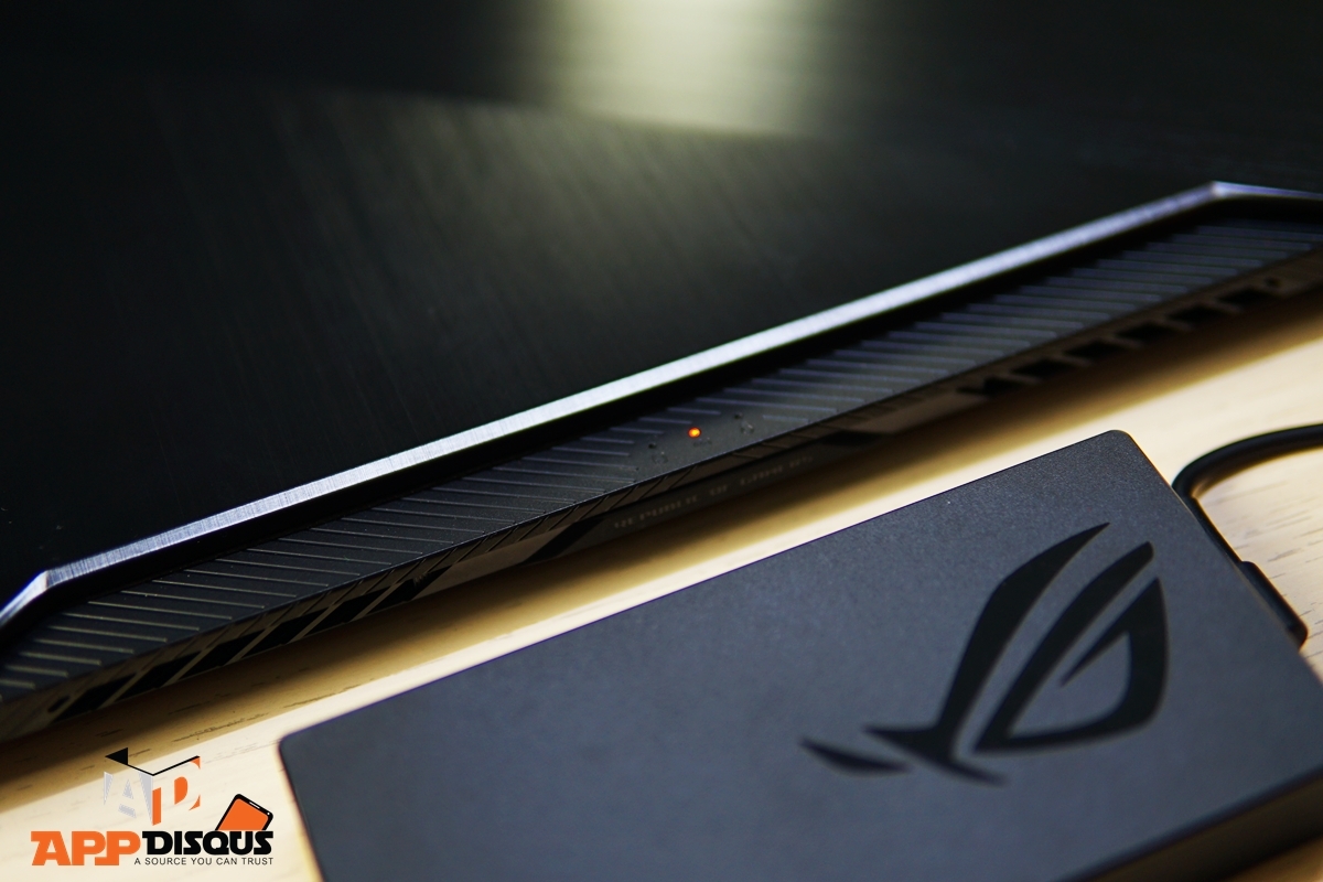 ตัวชาร์จแบตและลายฝาหลังคือสัญลักษณ์ที่บอกถึงความเป็นตัวตนของ ROG ดวงตาสีแดงมีแสงไฟเบาๆ บอกให้รู้ว่านี่คือเครื่องสำหรับคนทำงานที่อาจจะซนไปสักหน่อย ^^ ถ้าคุณเป็นเจ้านายแล้วเผลอ ตอนนี้เขาอาจจะแอบเล่นเกมในเวลาทำงานอยู่ก็ได้ 555