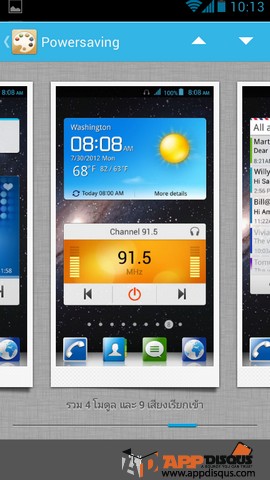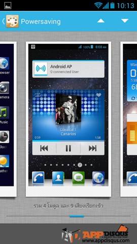 แม้จะเห็นว่าไม่มีหน้า Appdrawer แต่อย่าคิดว่าหน้าโฮมของ Cheetah มีลูกเล่นน้อยนะครับ เพราะมันสามารถปรับตั้ง transition ลูกเล่ขณะเปลี่ยนหน้าได้ถึง 9 แบบ