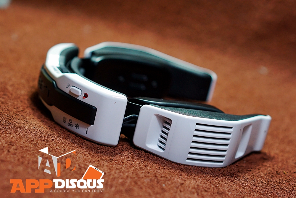 ลักษณะภายนอกคล้ายหูฟังน้ำหนักเบา ( 373 กรัม ) ปรับขนาดได้ ใช้วัสดุประกอบเป็นพลาสติกเกรดพรีเมี่ยมผลิตในโรงงานเดียวกันกับ Moshi ที่ผลิต case ให้ iPhone ดูทนทานแข็งแรงมีความแพง ตัวนี้ไม่มีแบตเตอรี่ในตัวนะคะ ข้อดีคือลดเรื่องน้ำหนักของตัวแบตฯ และเพิ่มความปลอดภัยมากขึ้นด้วย หมดห่วงเรื่องที่ว่าใส่ๆ อยู่คอจะระเบิดหรือเปล่า แล้วจะใช้ยังไงหล่ะ…อุปกรณ์ตัวนี้จำเป็นต้องใช้คู่กับตัว Power bank ที่ให้กำลังไฟอย่างน้อย 5 โวลต์ / 2.1 แอมป์ ( หากแรงดันหรือกระแสไฟน้อยน้อยกว่านี้จะส่งผลต่อประสิทธิภาพการทำงานของอุปกรณ์ )