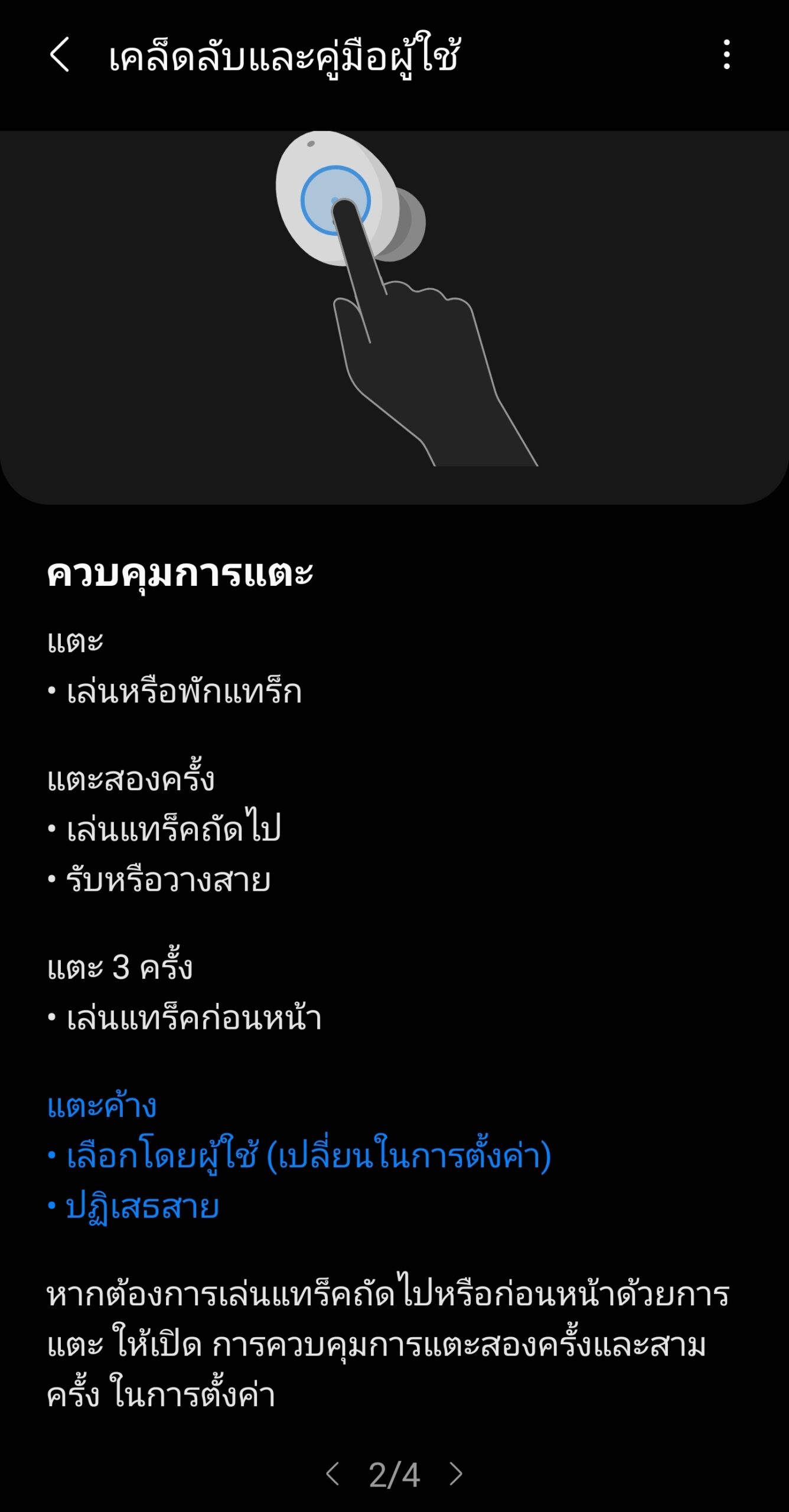 วิธีการใช้งานโดยตรงจากตั้งหูฟัง โดยไม่ต้องเปิดเข้าไปเลือกในสมาร์ทโฟน ก็จะเป็นการแตะเพื่อเลือกให้ เปิด/ปิด เพลง แตะสองครั้งเพื่อเล่นเพลงถัดไป หรือ 3 ครั้งสำหรับการแบ็คกลับ นอกจากนี้ยังกดค้างเพื่อเปิด Active Noise Canceling เป็นการตัดเสียงรบกวนจากภายนอก