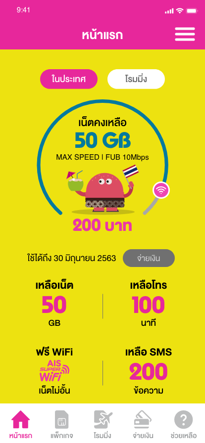 ความพิเศษของบริการ GOMO นั้นคือ การทำทุกอย่างบนออนไลน์ทั้งระบบครับ หลังจากเราสมัครไอดี ลงทะเบียนซิมเรียบร้อย เราจะสามารถดูข้อมูลการใช้งานของเราได้ในแอปพลิเคชัน GOMO โดยจะมีรายละเอียดทั้งปริมาณเน็ตที่เราใช้งานไปแล้ว จำนวนการโทร และข้อมูลต่างๆ ของเราทั้งหมด หากใครต้องการซื้อแพ็กเกจเสริม อย่างเน็ตเต็มสปีดเพิ่มเติม หรืออยากเสริมเรื่องการโทรเพิ่ม ก็สามารถซื้อผ่านแอปพลิเคชันได้เลยทันที