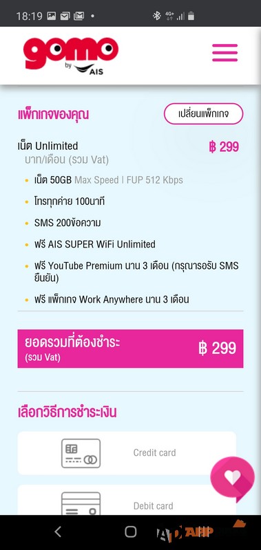 โดยแพ็กเกจของ GOMO นั้น จะมีเพียงแพ็กเกจเดียวนะครับ คือ  299 บาท ที่มาพร้อมกับ