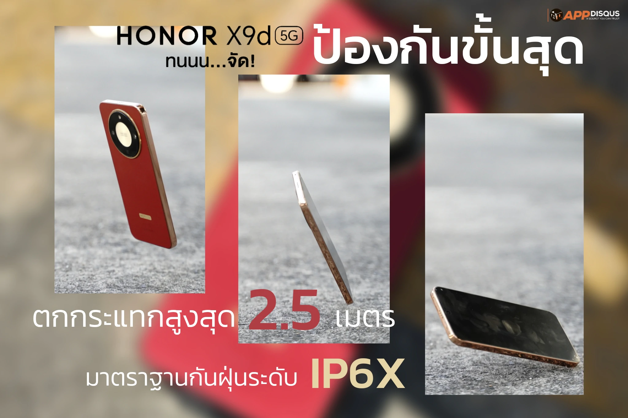 จุดขายแรกที่ต้องพูดถึง คือความทนทานของ HONOR X9d ที่ทำได้เหนือกว่ารุ่นก่อนหน้าแบบเห็นได้ชัด เด่นมากตั้งแต่โครงสร้างแบบ 6 ชั้น, กระจกแข็งพิเศษ Ultra-Deep Tempered Glass และวัสดุ Non-Newtonian Fluid ที่ช่วยกระจายแรงกระแทก