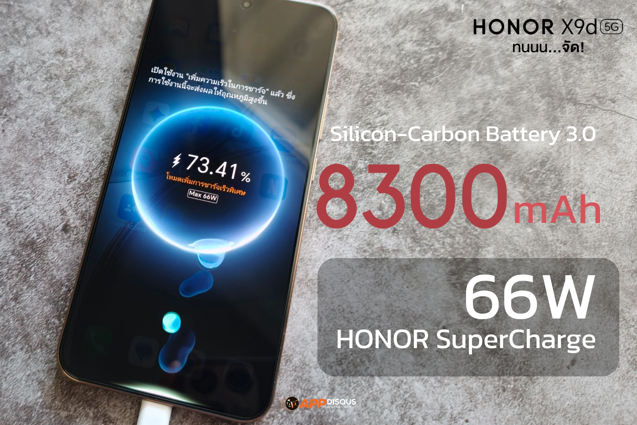 และเมื่อรวมกับแบตเตอรี่ความจุ 8,300mAh ที่มากที่สุดในวงการตอนนี้ ก็ยิ่งทำให้ HONOR X9d เป็นสมาร์ตโฟนที่ทั้ง “ถึก อึด ทน” แบบครบทุกมิติ — ไม่ใช่แค่อึดเรื่องความทนทานทางกายภาพ แต่ยังอึดในเรื่องการใช้งานจริง ใช้ได้ทั้งวันแบบไม่ต้องพะวงเรื่องแบตด้วยซ้ำ