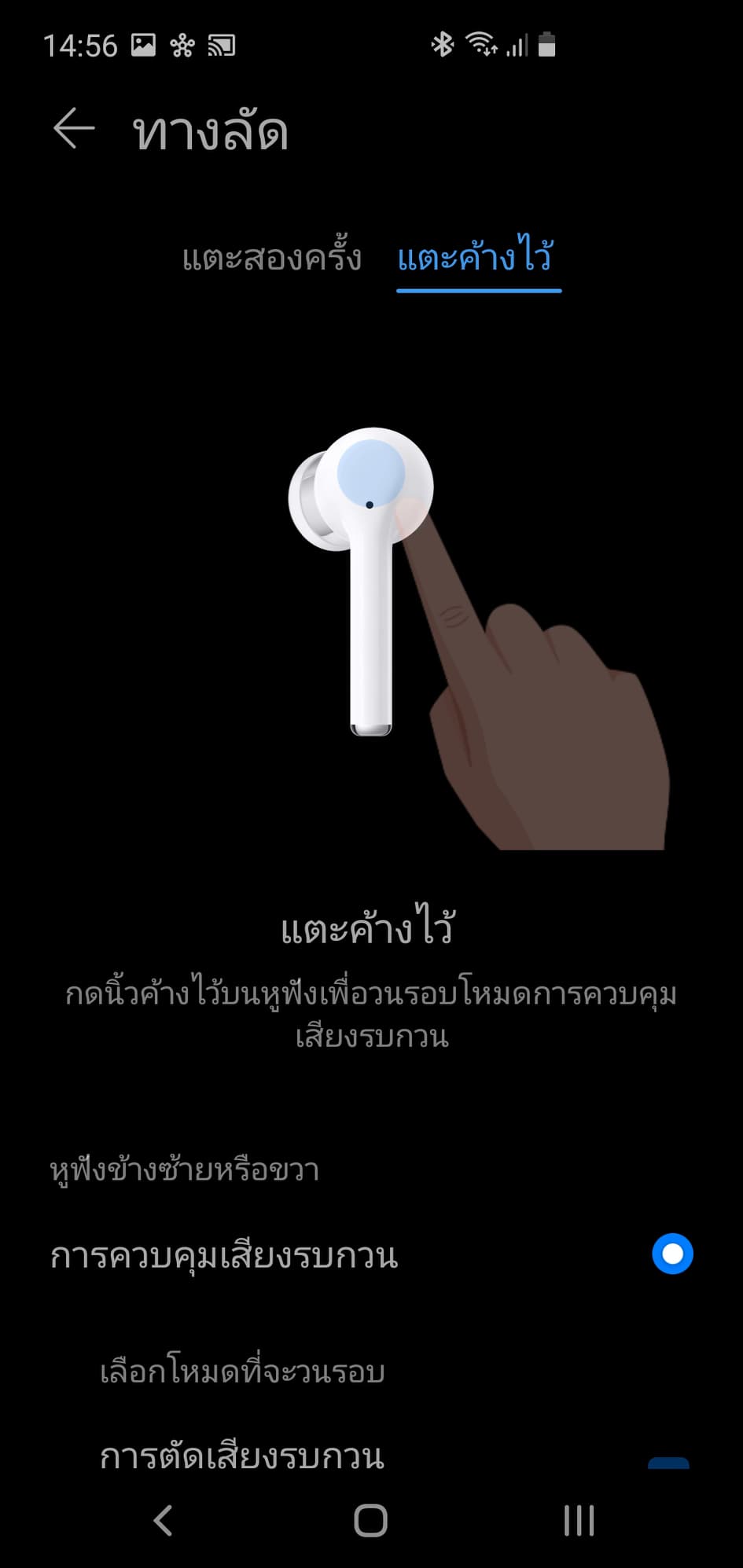 จะมีคู่มือการกำหนดค่าต่างๆ เราสามารถตั้งค่าการใช้งานต่างๆ ผ่านทางแอปฯ นี้ได้เลยค่ะ รวมไปถึงวิธีการใช้งานของหูฟัง และการตั้งค่าทางลัดที่เราสามารถกำหนดเองได้ เช่นการแตะ 2 ครั้งอยากกำหนดให้เล่นเพลงต่อไป หรือ เล่น/หยุด เพลง ก็สามารถเลือกได้จากแอปฯ นี้เลยค่ะ