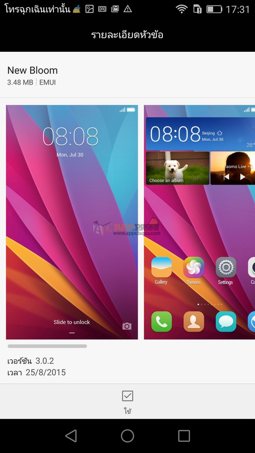 ສ່ວນຫນ້າ UI ປົກະຕິຍັງຄົງສະໄຕເດີມຂອງ Huawei ບໍ່ມີຫນ້າ AppDrawer ແລະ ມີ Themes ໃຫ້ເລືອກປ່ຽນມາໃຊ້ໄດ້ລວມເຖິງການຕັ້ງຄ່າຮູບແບບການສະໄລ້ຫນ້າໂຮມ ເລື່ອງຂອງການແຕ່ງຫນ້າໂຮມ ເຮັດໄດ້ບໍ່ມີເບື່ອເລີຍ.