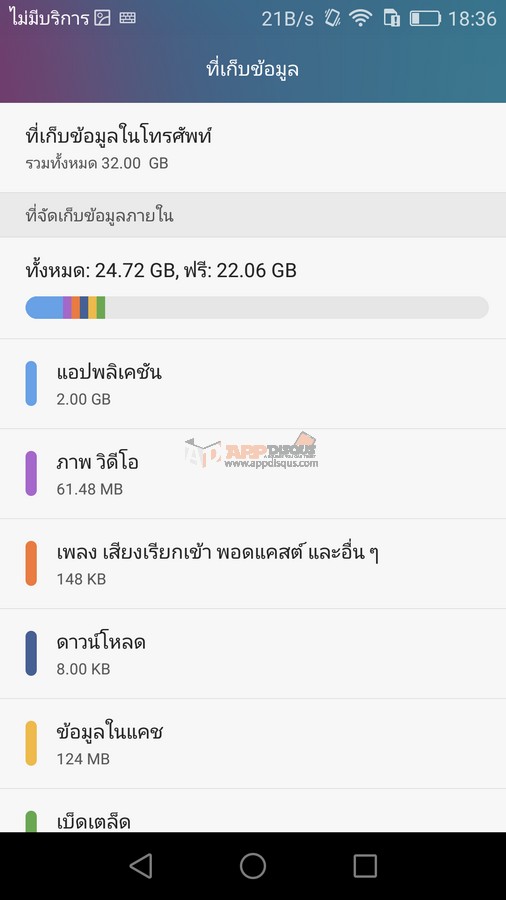 ຫນ່ວຍຄວາມຈຳພາຍໃນ 32GB ໃຊ້ໄດ້ແທ້ 24.72GB ເລືອກຕຳແຫນ່ງການຕິດຕັ້ງແອັບຯເລີ່ມຕົ້ນໄດ້ວ່າຈະໃຫ້ຈັດເກັບແອັບຯລົງຫນ່ວຍຄວາມຈຳເຄື່ອງ ຫລື ຈະໃຫ້ໄປລົງຫນ່ວຍຄວາມຈຳພາຍນອກ(ຖ້າຮອງຮັບ) ສາວນແບັດຯຂະຫນາດ 3,000 mAh ເປັນມາດຕະຖານໄປແລ້ວຄວາມອຶດໃນການໃຊ້ງານກໍ່ພໍໆກັນໄປຫມົດ ສຳລັບເຄື່ອງທີ່ໃຊ້ແບັດຯ 3,000 mAh ໃນຊ່ວງນີ້ ໃຊ້ງານໄດ້ວັນຕໍ່ວັນ ພຽງພໍໃຊ້ງານໄດ້ຢູ່ ສຳຄັນຄືຫນ້າຈໍຖ້າເປີດຕິດຕໍ່ກັນກໍ່ສາມາດຫມົດໄດ້ພາຍໃນເວລາປະມານ 5 ຊົ່ວໂມງ (ເປີດຕໍ່ເນື່ອງ)