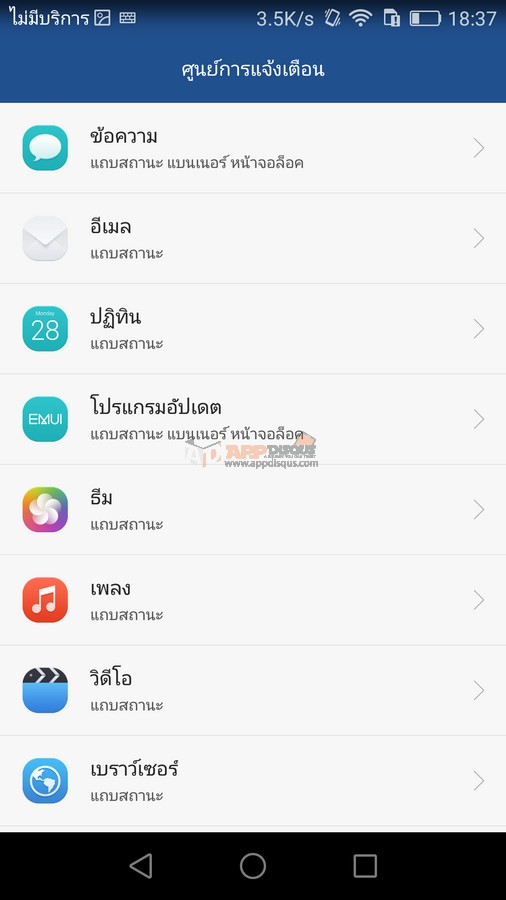 ການຈັດການການແຈ້ງເຕືອນໂດຍເຮົາລະບຸໄດ້ເປັນລາຍແອັບຯເລີຍວ່າຕ້ອງການໃຫ້ມັນແຈ້ງເຕືອນໃນທີ່ຈຸດໃດແດ່ ເຊິ່່ມີສາມຈຸດສຳຄັນນັ້ນຄືແຈ້ງເຕືອນໃນແຖບການແຈ້ງເຕືອນ, ໃນຫນ້າແຈ້ງເຕືອນ ແລະ ຫນ້າຈໍເມື່ອລັອກ ເຮົາກຳນົດໄດ້ວ່າໃຫ້ແອັບຯໃດແຈ້ງເຕືອນຫລືບໍ່ແຈ້ງເຕືອນທີ່ໃດແດ່.
