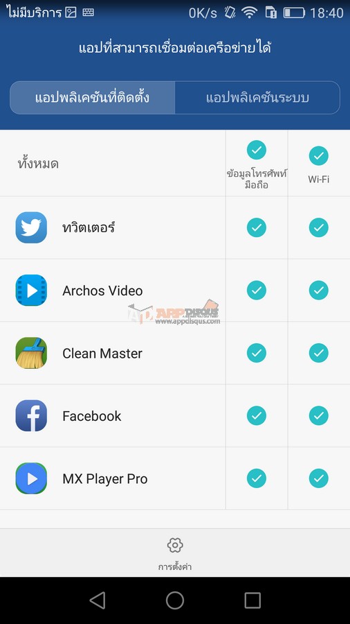 ລະບຸແອັບຯທີ່ຕ້ອງການໃຫ້ເຊື່ອມຕໍ່ເຄືອຂ່າຍ ຫລື ຕ້ອງການຈະປິດກັ້ນ ເພື່ອການປະຫຍັດພະລັງງານ ປະຫຍັດປະລິມານການໃຊ້ຂໍ້ມູນໃນແອັບຯທີ່ເຮົາຄິດວ່າບໍ່ຈຳເປັນ.